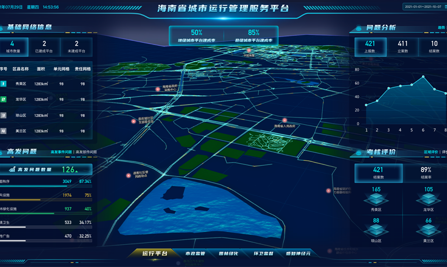海南省在原有城市管理信息化工作基礎(chǔ)上,整合建設(shè)覆蓋20個市縣的海南省市一體化城市綜合管理服務(wù)平臺,初步形成全省城市綜合管理服務(wù)平臺智慧互聯(lián)、數(shù)據(jù)共享、協(xié)同高效,打造集精準(zhǔn)監(jiān)測、主動發(fā)現(xiàn)、智能處置的城市“一盤棋”治理體系,增強城市管理綜合統(tǒng)籌能力,提高城市科學(xué)化、精細(xì)化、智能化管理水平。