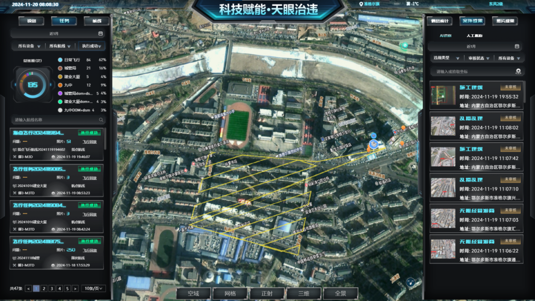 “無(wú)人機(jī)AI識(shí)別到關(guān)地塔社區(qū)有居民正在進(jìn)行違法建設(shè)。”“好的,馬上處置?!?..